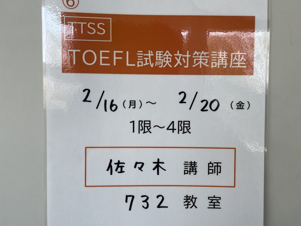 先週は、大学でのTOEFL対策集中講座の週でした。